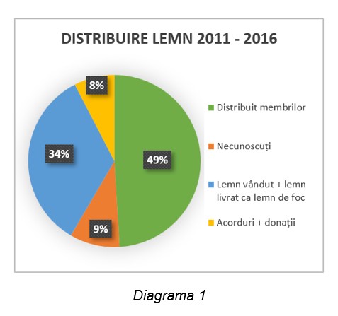 Să reținem că până în anul 2017, distribuirea/valorificarea lemnului nu a fost înregistrată în documente oficiale! A existat, prin anul 2013, o tentativă de transparentizare a evidenței privind materialul lemnos exploatat, și care a fost vândut sau atribuit membrilor Obștii sau altor persoane, dar s-a renunțat. |